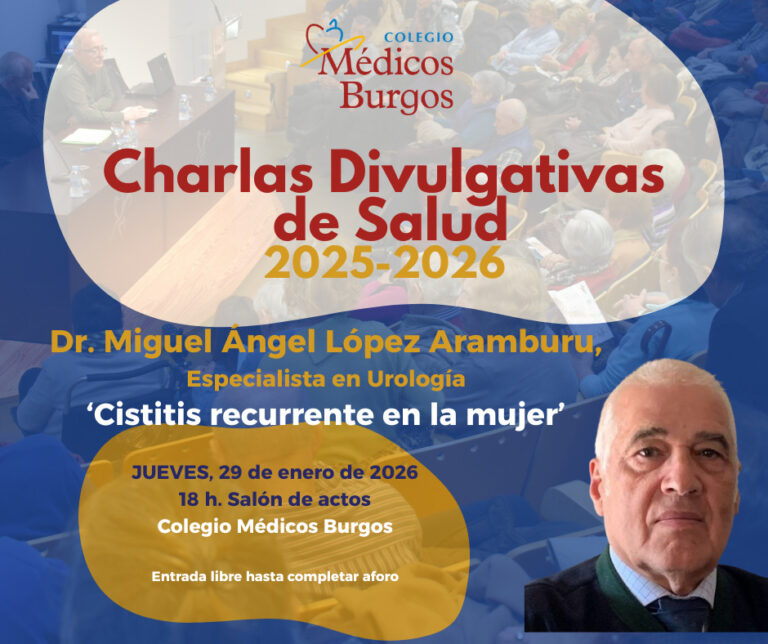 El Colegio de Médicos de Burgos acogerá el jueves 29 de enero de 2026, a las 18:00 horas, una nueva sesión de las Charlas Divulgativas